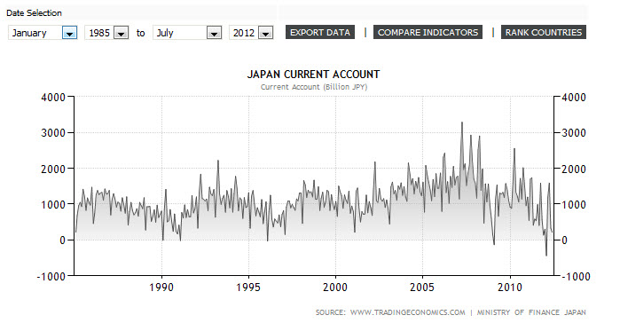 Current AccountMediumJapanese Economic Indicatorsif actual > forecast, bullish for JPYMeasures the flow of goods, services, income and transfer payments moving into and out of a country. More money flowing into the country (a current account surplus) means more people have been required to buy yen. More money flowing out of country (a current account deficit) leads to currency depreciation because the currency is leaving the country to make payments in a foreign currency.